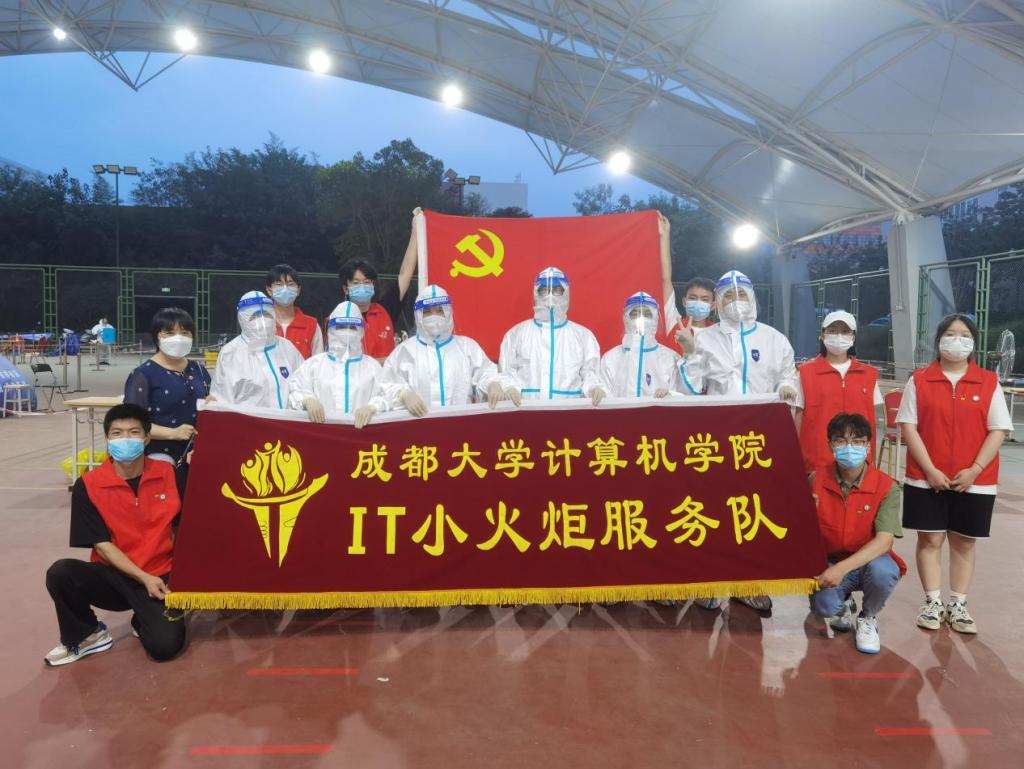 党委组织调派党员志愿服务队投入到学校风雨操场核酸检测工作中,7名教师党员志愿者和“IT小火炬”服务队7名学生志愿者由Bwin体育