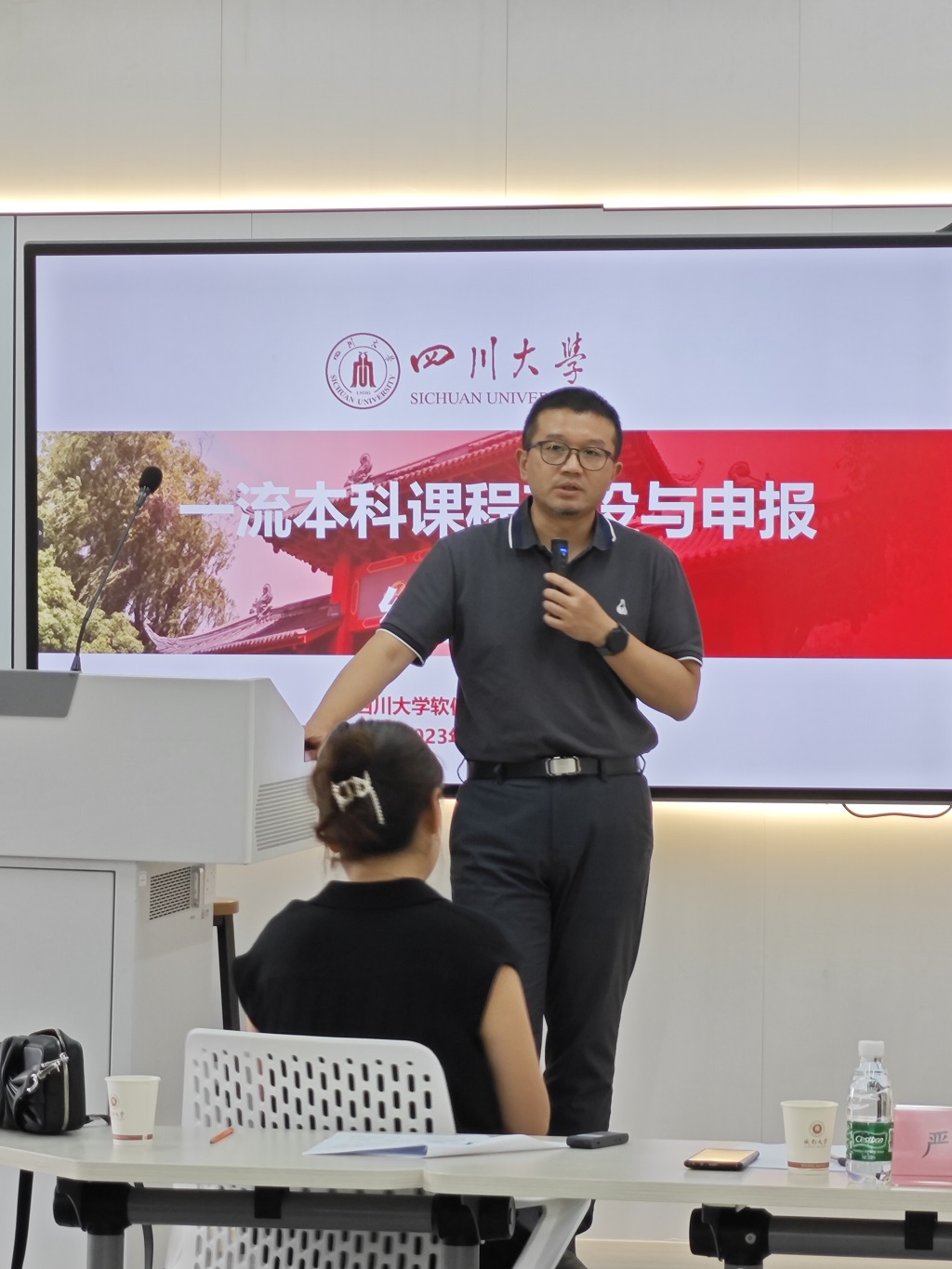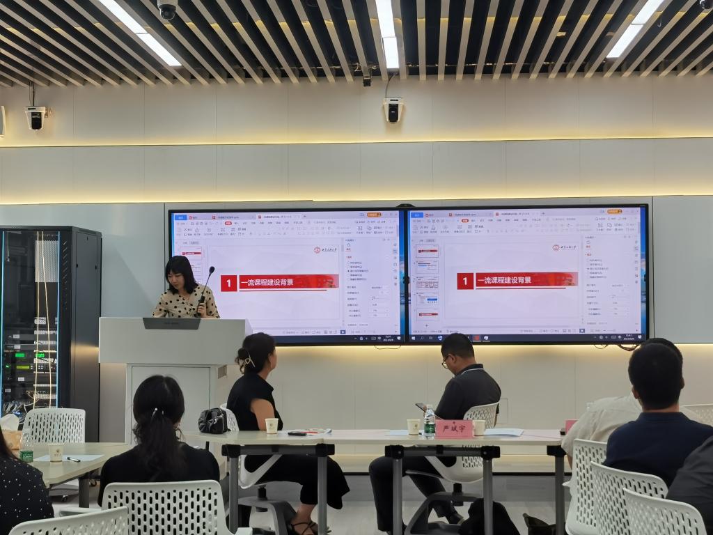 随后严斌宇教授和陈雅茜教授做了专题讲座,针对国家级一流本科课程申报的相关政策和策略进行了详细分析,并对国家级一流本科课程实施基础、建设经验、内容体系、设计思路、团队搭建、应用推广等方面进行了细致的交流与分享,为大家展示了相关课程的建设路径、协作方式、环节设计等,提供了可参照的经验。