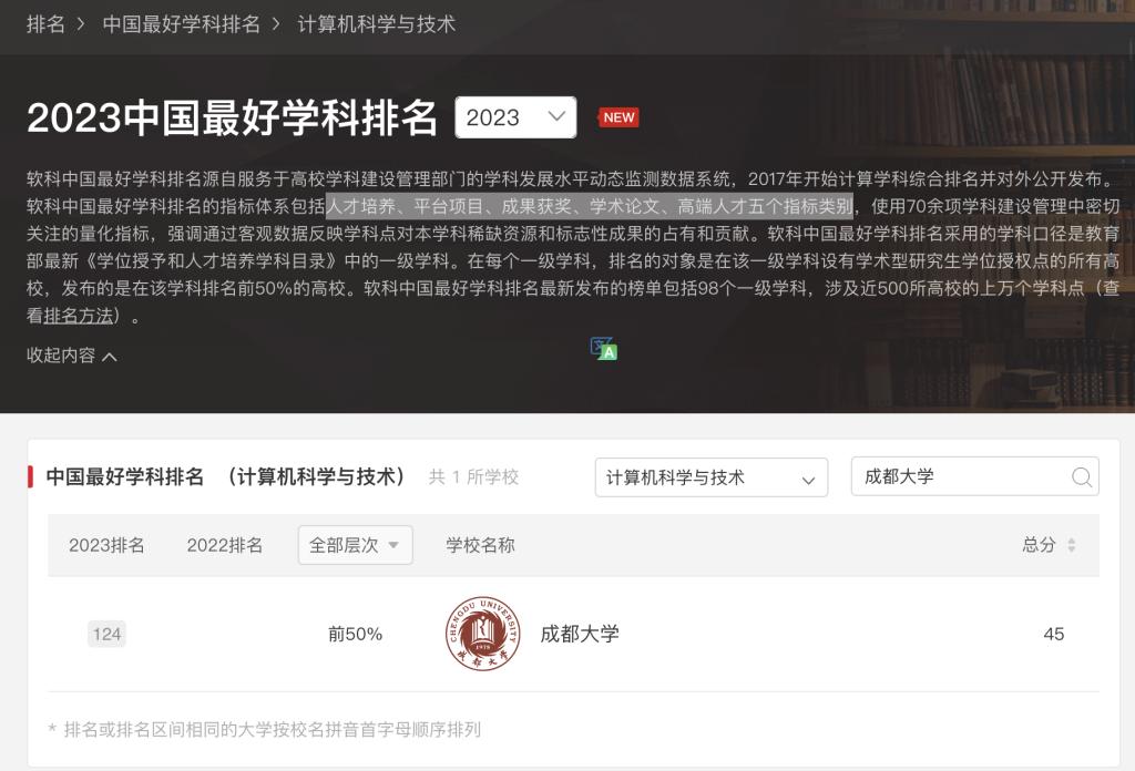 计算机科学与技术学科首次入围,排名全国124位。计算机科学与技术学科榜单上,四川省共计5所高校上榜,Bwin足球