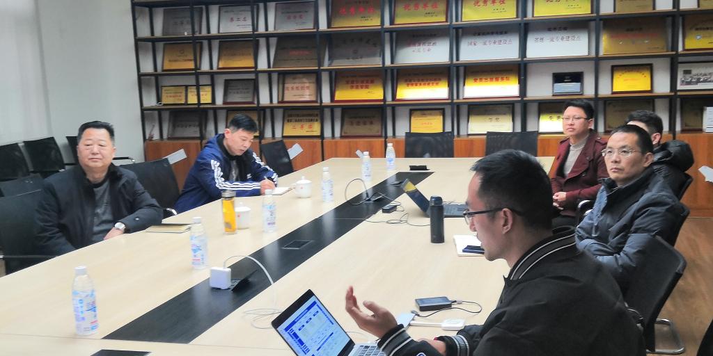 院长高朝邦、主管科研副院长古沐松及应急管理项目团队负责人及相关合作企业参会并进行项目建设情况汇报。
