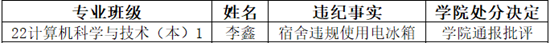 按照《成都大学学生手册(2023)》中《成都大学学生违纪处分办法(修订)》第二十六条第(四)款规定,为严肃校纪校规,现对以下学生给予全院通报批评。