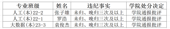 根据《成都大学学生手册(2024)》中的《成都大学学生违纪处分办法(修订)》第二十六条第(八)款规定,为了严肃校纪校规,Bwin体育 决定对以下违纪学生给予全院通报批评。