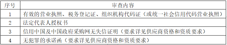 投标人须通过下表每一项审查,才能进入符合性审查评审。其中任何一项不合格,则其资格审查不合格。