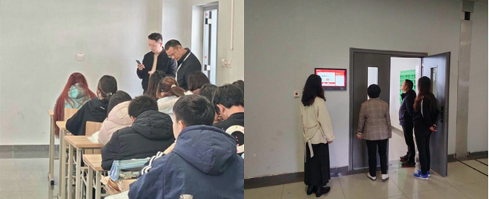 党委书记和院长带队分别奔赴各个教学区域,包括综合教学楼A、综合教学楼B以及实验实训中心,对第一、二节课的教学运行情况进行了全覆盖的巡查。