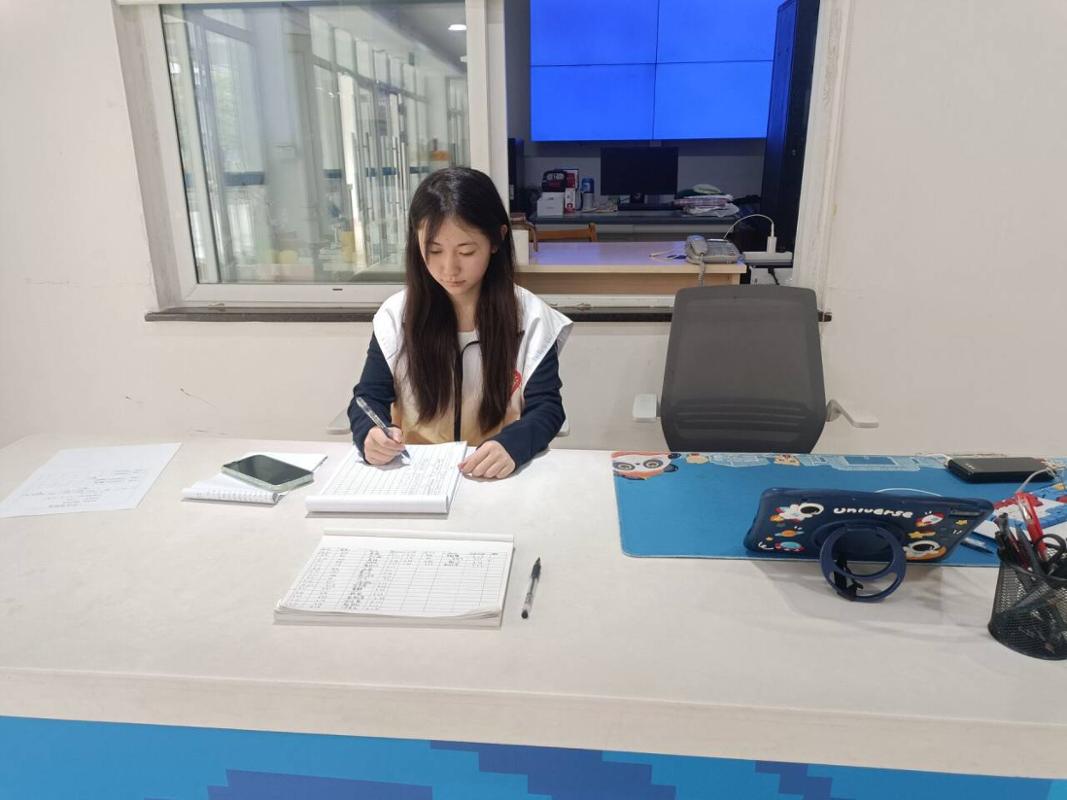 在寝室宿管服务台,志愿者们身着统一志愿马甲,坚守岗位、认真值守,伏案完成信息登记,以耐心细致的态度为师生提供便捷服务,用专注与热忱展现青年志愿者的责任担当。