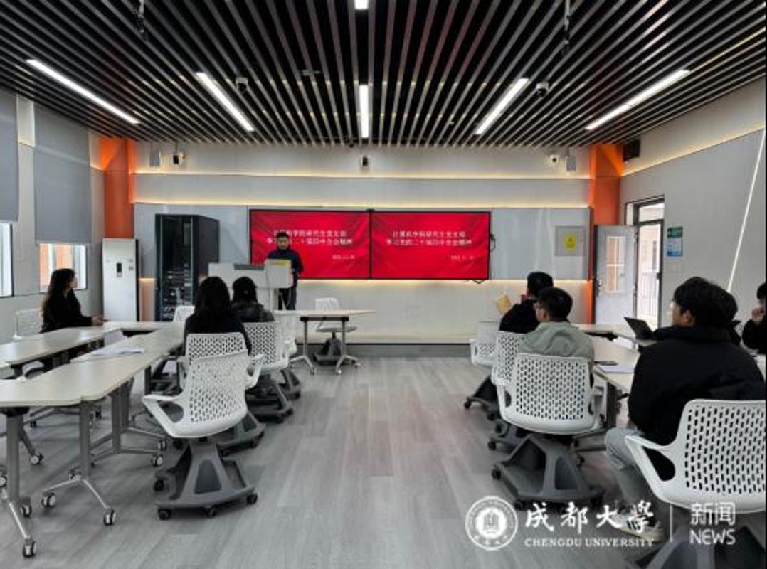 研究生党支部于10305室召开会议,集体学习党的二十届四中全会精神。本次学习会由辅导员饶涛主讲。